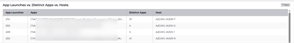 It helps identify usage patterns and app diversity on each host to better understand workload distribution.