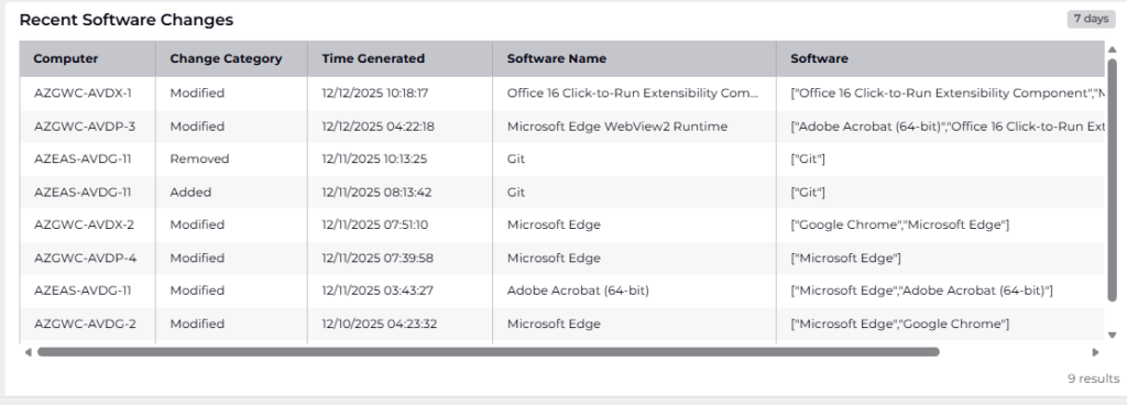 | project SoftwareName, ChangeCategory, Computer, TimeGenerated