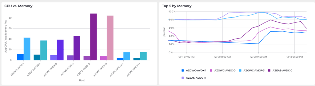 Why Useful: Helps quickly pinpoint memory-heavy hosts and correlate them with workloads for targeted troubleshooting and optimization.