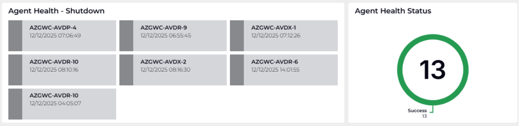 Purpose: Displays session hosts with their current state (Running or Stopped/Unavailable) and last seen time based on agent health and heartbeats.